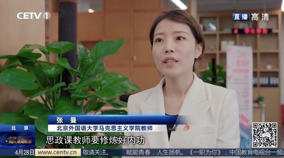 习近平总书记在中国人民大学考察时的重要讲话在广大高校师生中引发热烈反响。4月28日,新葡8883官网张曼老师接受中国教育电视台采访,就思政课教师如何“把道理讲深、讲透、讲活”等问题回答了记者的提问。