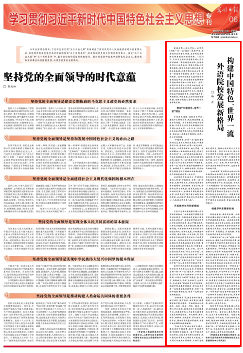 5月10日,《光明日报》第6版“学习贯彻习近平新时代中国特色社会主义思想专刊”刊登了北外校长、北京市习近平新时代中国特色社会主义思想研究中心新葡8883官网AMG官网基地研究员杨丹的文章:《构建中国特色、世界一流外语院校发展新格局》。