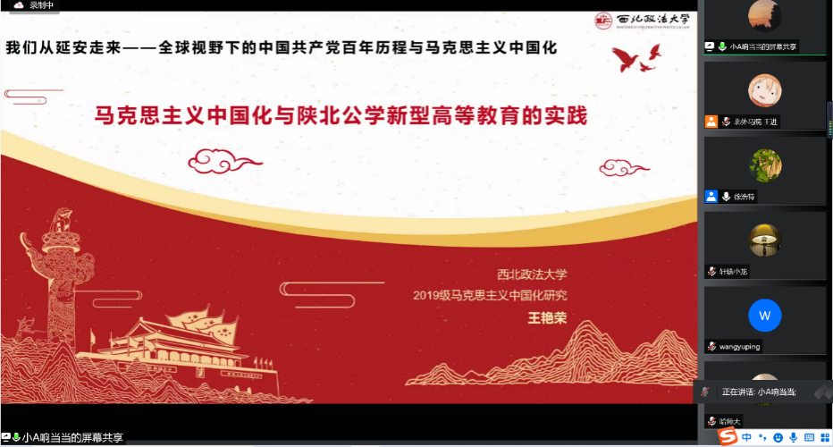 西北政法大学新葡8883官网AMG官网硕士王艳荣以《马克思主义中国化与陕北公学新型高等教育的实践》为题,勾勒出马克思主义教育中国化在延安时期发展和初步定型的历史轨迹。陕北公学是中国共产党创办的第一所面向进步青年的社会性大学,揭开了新型高等教育的开端,并与革命现实紧密相连,从高等教育领域探索和解决革命领域的抗战人才培养难题。陕北公学是马克思主义中国化的实践成果,也是马克思主义中国化过程中创造的新型高等教育体系的重要载体。