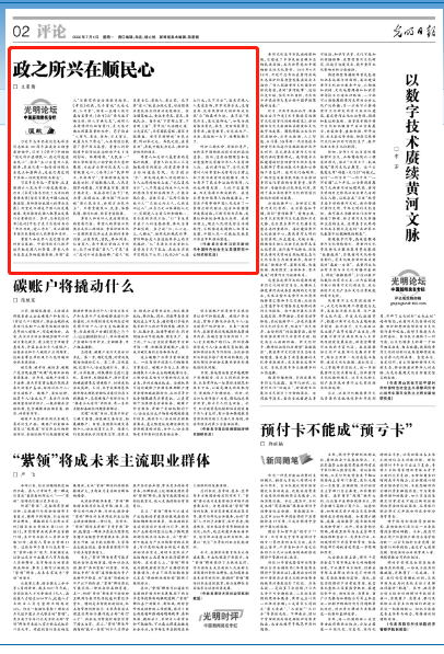 7月4日,《光明日报》第2版《光明论坛》栏目刊登北外新葡8883官网AMG官网王曼倩副教授的文章《政之所兴在顺民心》。
