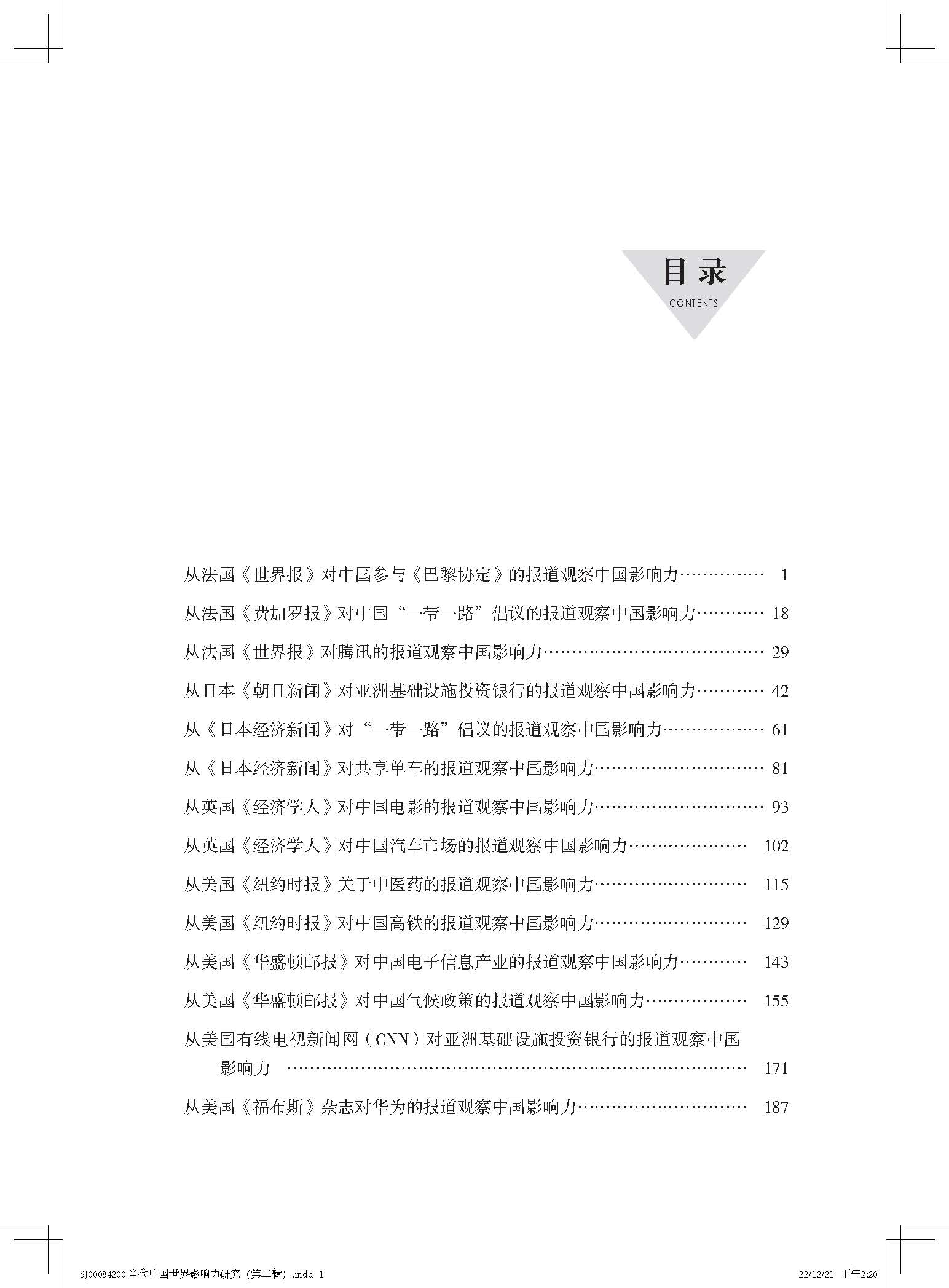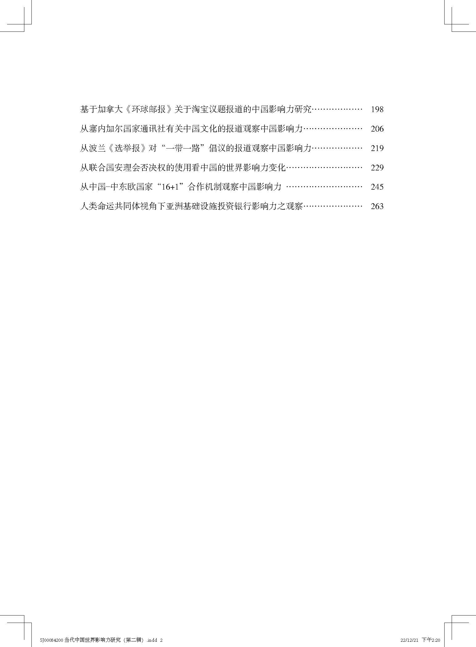 附:《当代中国世界影响力研究》(第二辑)目录
