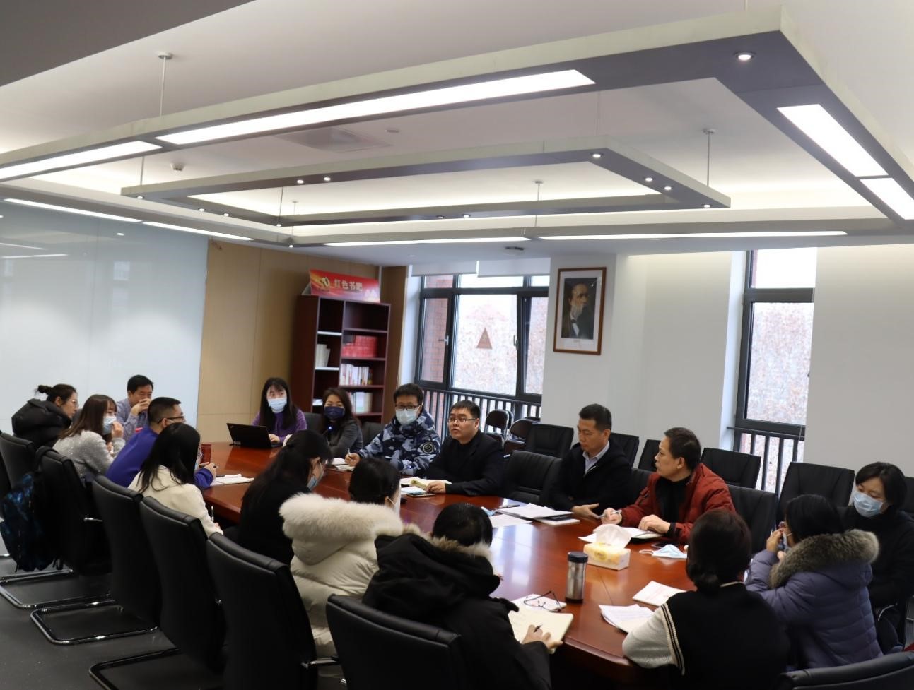 教研室主任赫雪、王成诚、王曼倩、郭小香、郭靖就各教研室政治学习、教学、科研工作等情况做了汇报与交流。韩雪青介绍了北京市习近平新时代中国特色社会主义思想研究中心北外研究基地建设情况。