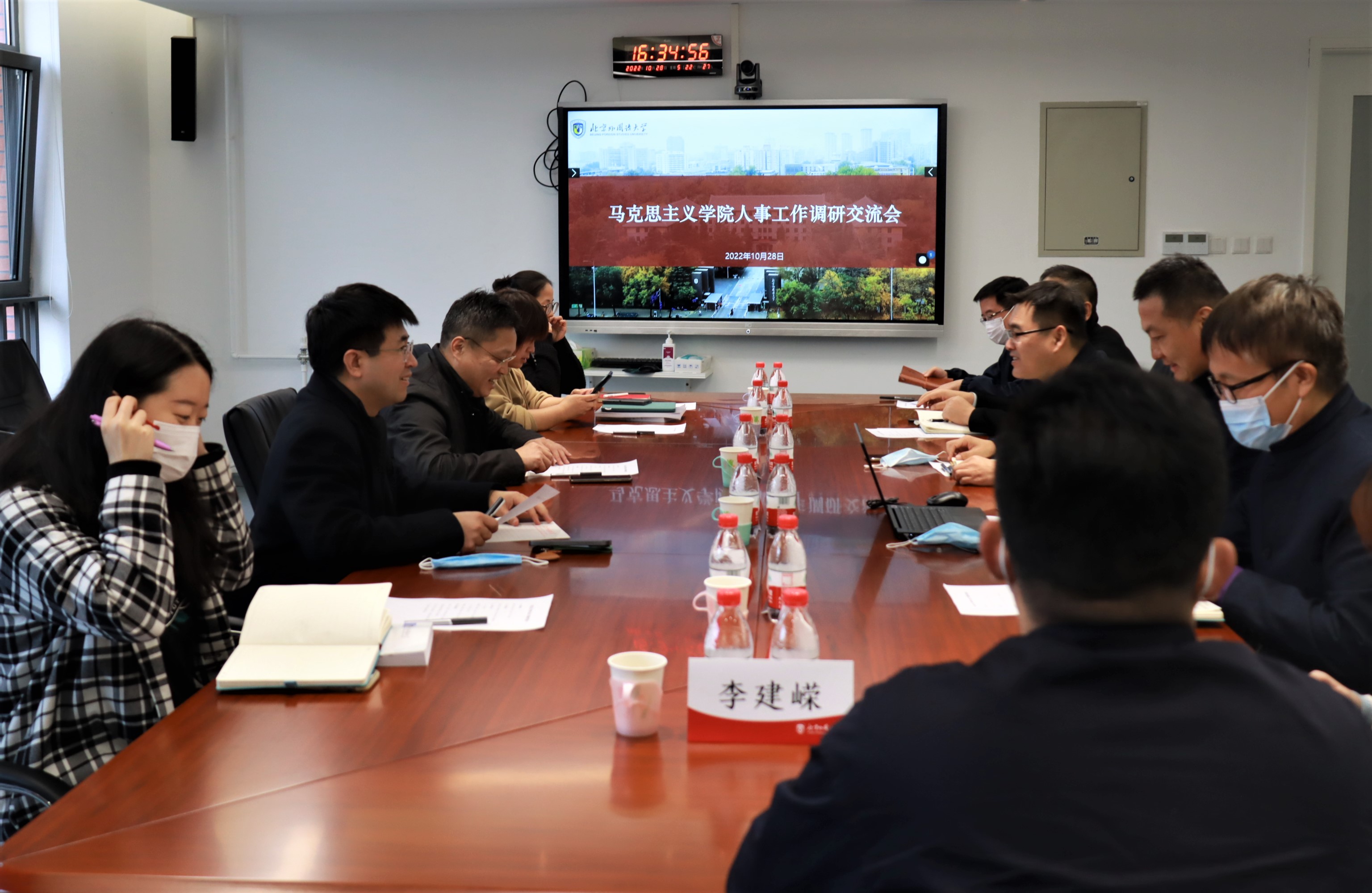 10月28日下午,校人事处处长刘博然带队走访新葡8883官网AMG官网,就师资队伍建设、职称评聘、人才引进、学科建设等人事工作进行调研交流。副处长姚金菊、苏磊,办公室主任闫华及侯佳伦陪同调研。新葡8883官网AMG官网班子成员、教师代表参会。