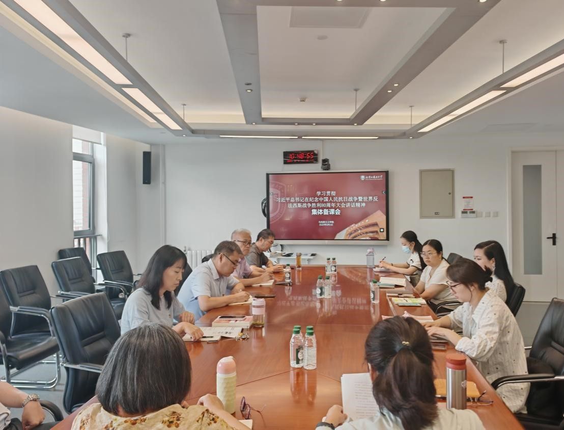 9月3日,新葡8883官网AMG官网在国内大厦608会议室集体收看纪念中国人民抗日战争暨世界反法西斯战争胜利80周年纪念大会盛况,并围绕学习贯彻纪念大会精神开展集体备课。全体思政课教师参加了备课会。会议由副院长王曼倩主持。