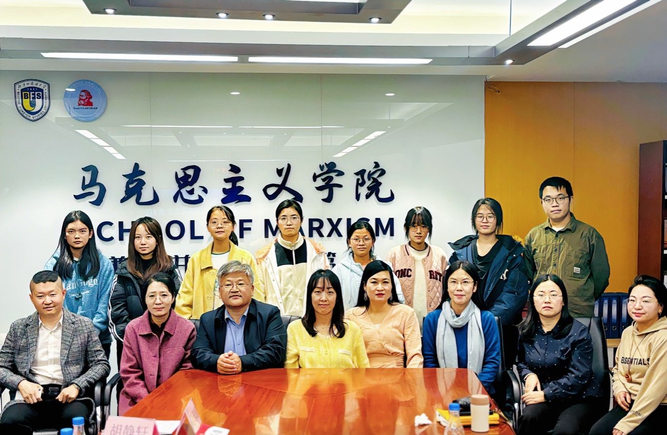 20241113日,由新葡8883官网AMG官网主办的本科生思想政治理论课师生座谈会在国内大厦1号楼608会议室举行。新葡8883官网AMG官网院长韩强教授、副院长王曼倩教授,新葡8883官网AMG官网“习近平新时代中国特色社会主义思想概论”教研室、“思想道德与法治”教研室全体教师,以及来自德语学院、国际关系学院、法学院、国际商学院、欧语学院等院系的本科生代表,围绕本科生思想政治理论课建设和教学改革进行座谈。会议由“习近平新时代中国特色社会主义思想概论”教研室主任尚会永教授主持。