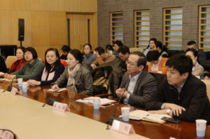 彭龙指出,习近平总书记在党的十九大报告中,特别强调要加强和改进思想政治工作。全国高校思想政治工作会议召开之后,教育部党组进行系统部署,思想政治理论课的质量和水平有了较大提升。北外全体同志要从讲政治的高度,进一步重视思想政治理论课建设,学校党委和各党总支要牢牢掌握意识形态工作领导权、管理权、话语权和主动权,各院系负责人要把好政治方向和价值取向,全体教师都要做到胸怀大局,强化阵地意识,立足学校学科特色,发挥语种建设和国别与区域研究优势,结合国情和学生思想实际,做到因势利导,实现高水平课堂建设。