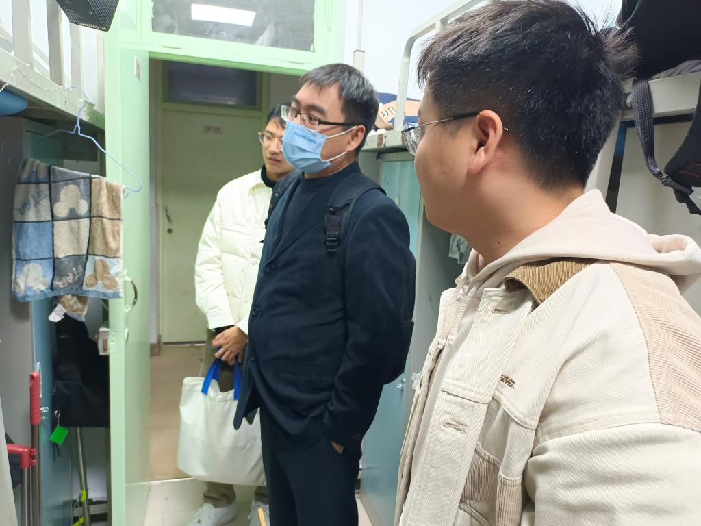祝和军对学生宿舍生活进行了了解,询问了大家的日常作息,同时叮嘱大家,在复杂的疫情背景下,作为马克思主义的学习者和践行者,一定要有马院担当,思想上不能滑坡,在积极践行社会责任的同时也要注意好个人的身心健康。