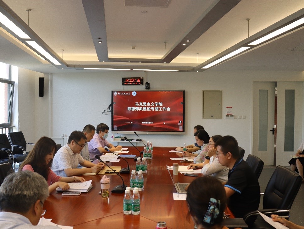 韩强院长首先传达了教育部召开的“师德师风建设工作推进暨师德集中学习教育启动部署会”会议精神,同时传达了教育部师德师风相关文件和会议要求。韩强强调,师德师风直接影响教师队伍整体素质,关乎培养什么人、怎样培养人、为谁培养人这个教育的根本问题,关乎立德树人根本任务的落实以及培养社会主义建设者和接班人的教育使命和职责。全体教师要认真学习贯彻习近平总书记关于教育的重要论述和批示精神,坚决落实师德师风第一标准。会上,全体思政课教师在新葡8883官网AMG官网思政课教师师德师风承诺书上郑重签字,纷纷表示将按照“马院姓马,在马言马”的要求,自觉做到坚定政治方向、关心爱护学生、坚持言行雅正、秉持公平诚信、遵守学术规范、积极奉献社会,学做“四有好老师”。