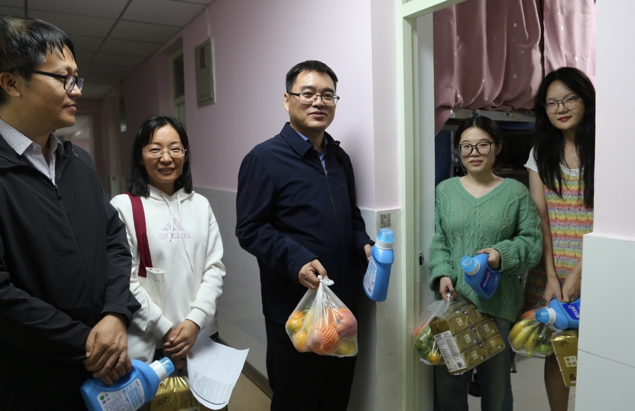 “宿”说心语,“寓”见关怀。祝和军、韩强一行人深入学生宿舍,为同学们送来节日礼品,亲切慰问新葡8883官网学生并排查消防安全隐患。