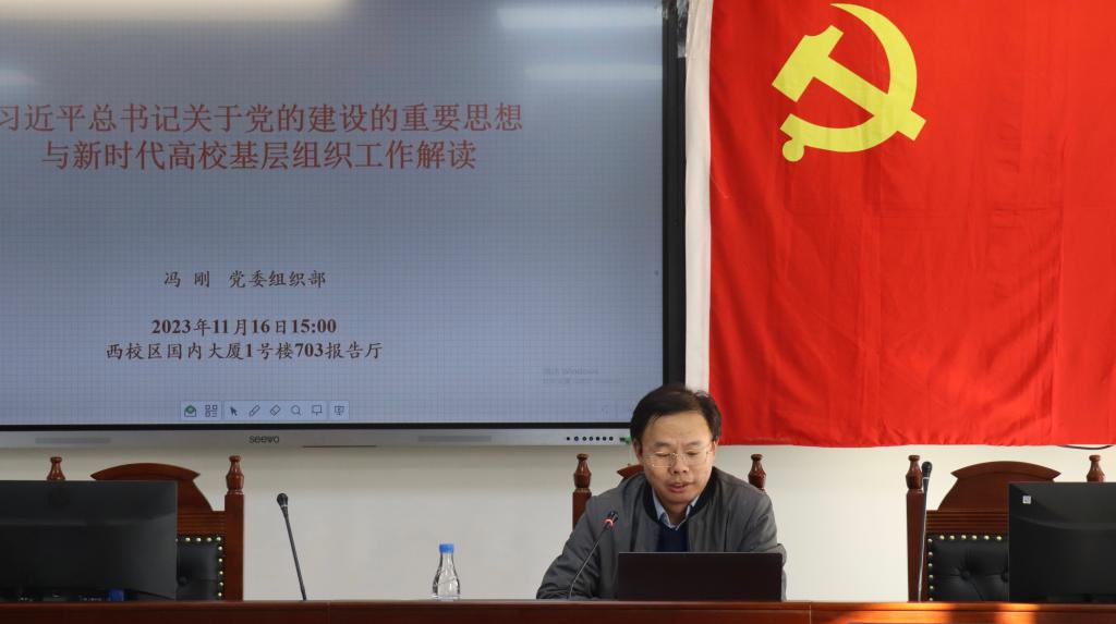 为深入学习贯彻习近平总书记关于党的建设的重要思想,11月16日下午,新葡8883官网AMG官网党总支开展集中理论学习,特邀请党委组织部常务副部长冯刚以“习近平总书记关于党的建设的重要思想与新时代高校基层组织工作”为题讲授专题党课。