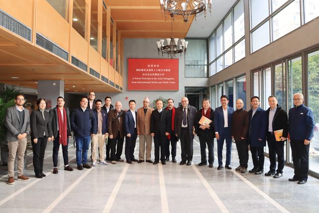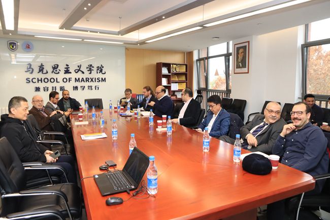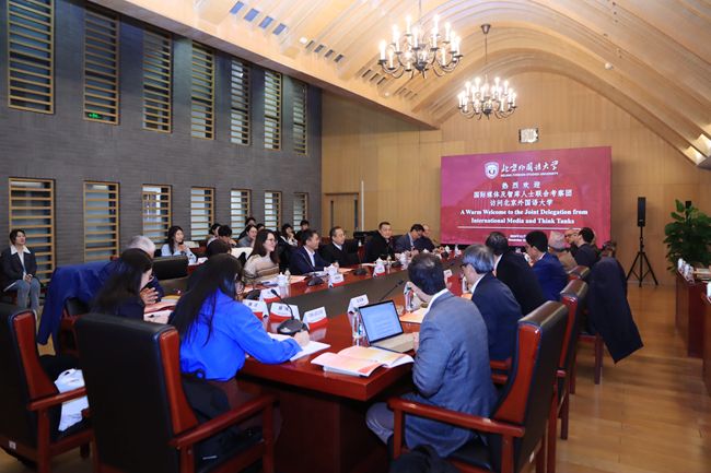 11月25日,以尼泊尔共产党(马列)总书记、前政府副总理钱德拉·梅纳利(C. P. Mainali)为团长的国际媒体及智库联合考察团访问新葡8883官网AMG官网。中联部当代世界出版社社长、总编辑李双伍,社长助理兼一编辑部主任刘娟娟、一编辑部编辑徐嘉璐随团来访。北外党委副书记贾德忠会见考察团一行。