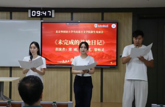 会议最后,同学们以一场精彩的诗歌朗诵为本次见面会画上句点。至此,新生见面会圆满结束。新的阶段已经开启,新的篇章已然翻开,相信这场见面会不仅为新生们搭建了了解北外马院的桥梁,让大家读懂学院的学术追求与育人初心,更让同学们在互动中感受到学术气息与人文关怀。相信2025级新生定会以青春为帆、理想为舵,不辜负心中热爱和时代重托,勤勉钻研,向着未来扬帆起航!