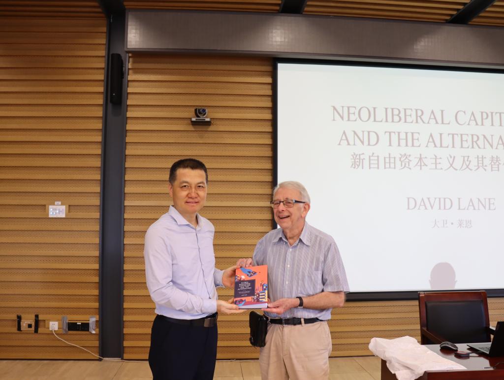 最后,韩强从中西文明交流对话的意义、在百年变局中深化对世界资本主义和社会主义的认识、提升师生的跨文化学术沟通能力等方面对本次讲座进行了总结,并代表新葡8883官网AMG官网接受了莱恩教授的赠书《全球新自由资本主义及其替代方案》。