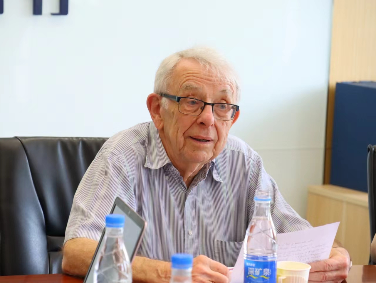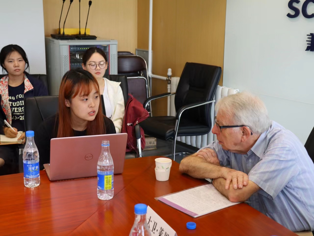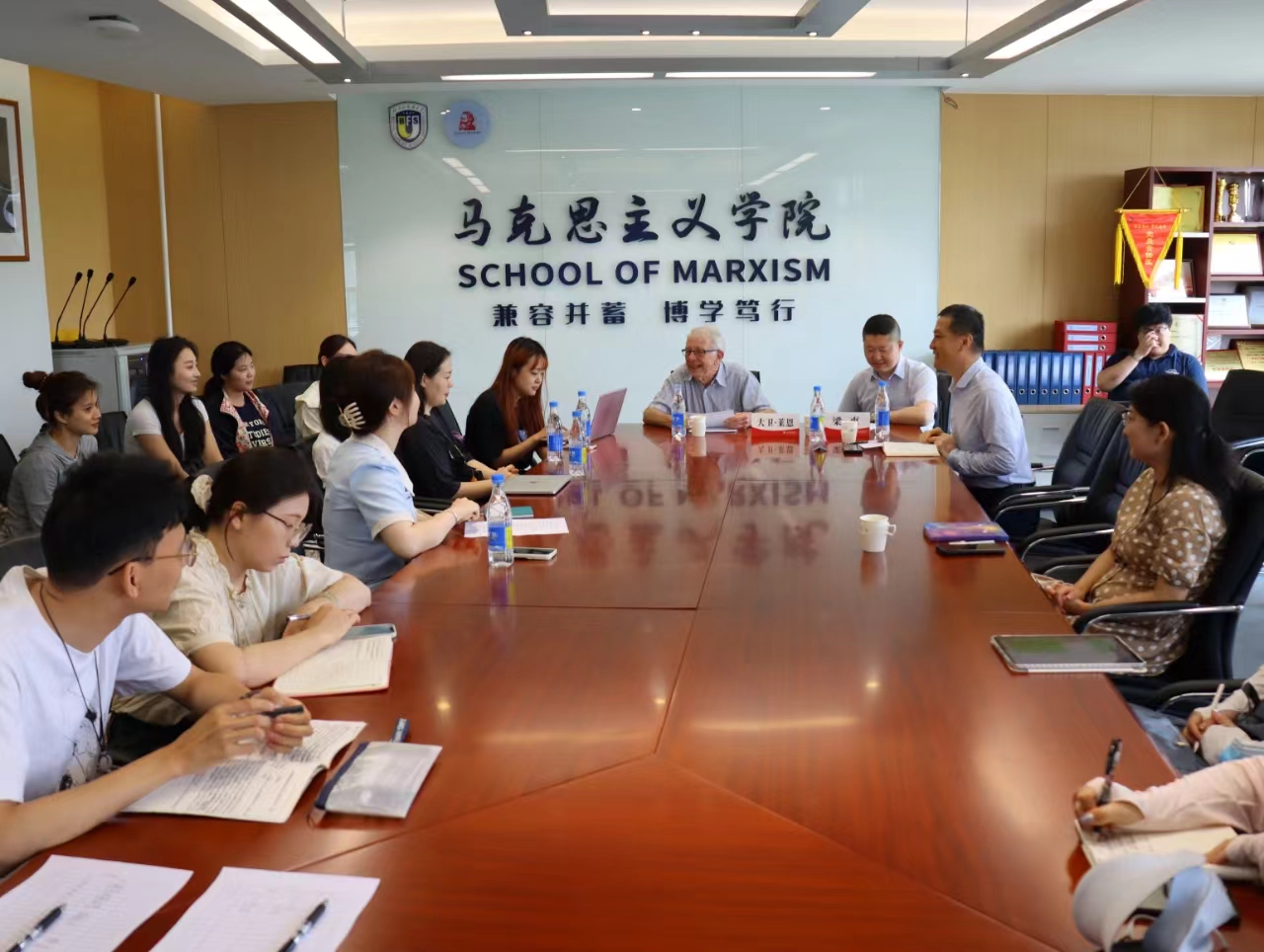 2024年5月18日,应新葡8883官网AMG官网邀请,剑桥大学荣休教授、英国社会科学院院士大卫·莱恩在国内大厦1号楼608会议室,围绕自身学术路径的选择与学习方法、剑桥大学人才培养模式、西方社会主义发展态势等问题同北外师生座谈。座谈会由新葡8883官网AMG官网院长韩强主持,新葡8883官网AMG官网教师梁爽担任学术翻译,新葡8883官网AMG官网教授尚会永等教师代表和来自新葡8883官网AMG官网、国际新闻与传播学院等院系的学生代表30余人参加了座谈会。此次座谈会是继5月17日莱恩教授在北外的学术报告“全球新自由资本主义及其替代方案”之后的第二场活动。