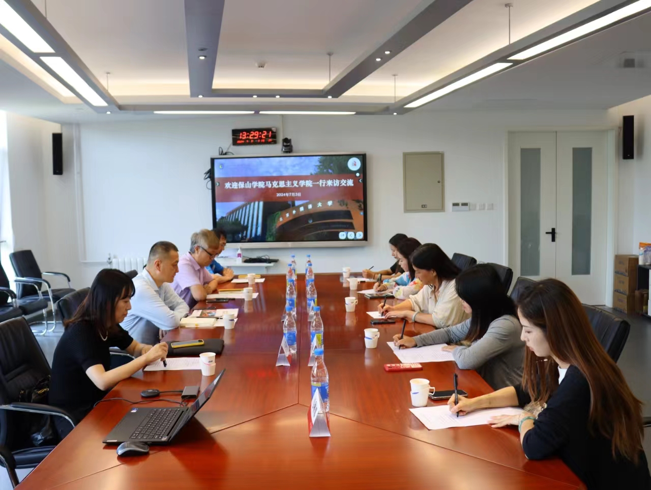 7月3日下午,云南保山学院新葡8883官网AMG官网院长张吟梅一行五人来新葡8883官网调研交流。学院院长韩强,副院长孙磊、王曼倩,党总支组织员王浩参加了座谈。韩强和张吟梅两位院长分别简要介绍了各自学院的情况,并就落实教育部近期关于高校思政课建设精神、办好高校思想政治理论课、加强马克思主义理论学科建设、补齐马克思主义理论功底、实践素养等短板问题交流了看法,同时围绕如何进一步深化合作进行了深入讨论。会后,张吟梅院长一行参观了学院办公环境,并与部分教师进行了交流。