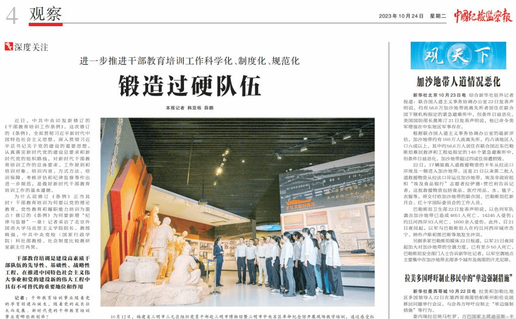 对此,2023年10月24日《中国纪检监察报》发表对专家学者的采访文章。新葡8883官网AMG官网院长韩强教授在采访中指出,党的十九大以来,习近平新时代中国特色社会主义思想为干部教育培训工作提供了科学指引和根本遵循,以习近平同志为核心的党中央就加强和改进干部教育培训工作提出了一系列新理念新思想新要求,干部教育培训工作面临的形势任务也发生了新的变化,亟需与时俱进对《条例》加以修订完善。他强调,只有以深入学习贯彻习近平新时代中国特色社会主义思想为主题主线,才能统一思想、统一意志、统一行动,奋力开创新时代新征程干部教育培训工作新局面。就《条例》中党性教育这一培训重点,他进一步表示,理想信念、党的宗旨、革命传统、党风廉政教育是党性的集中体现,也是党性教育的重要内容。加强党性锻炼、党性修养,是我们党不断从胜利走向胜利的制胜法宝,也是每一个共产党人的终身必修课。