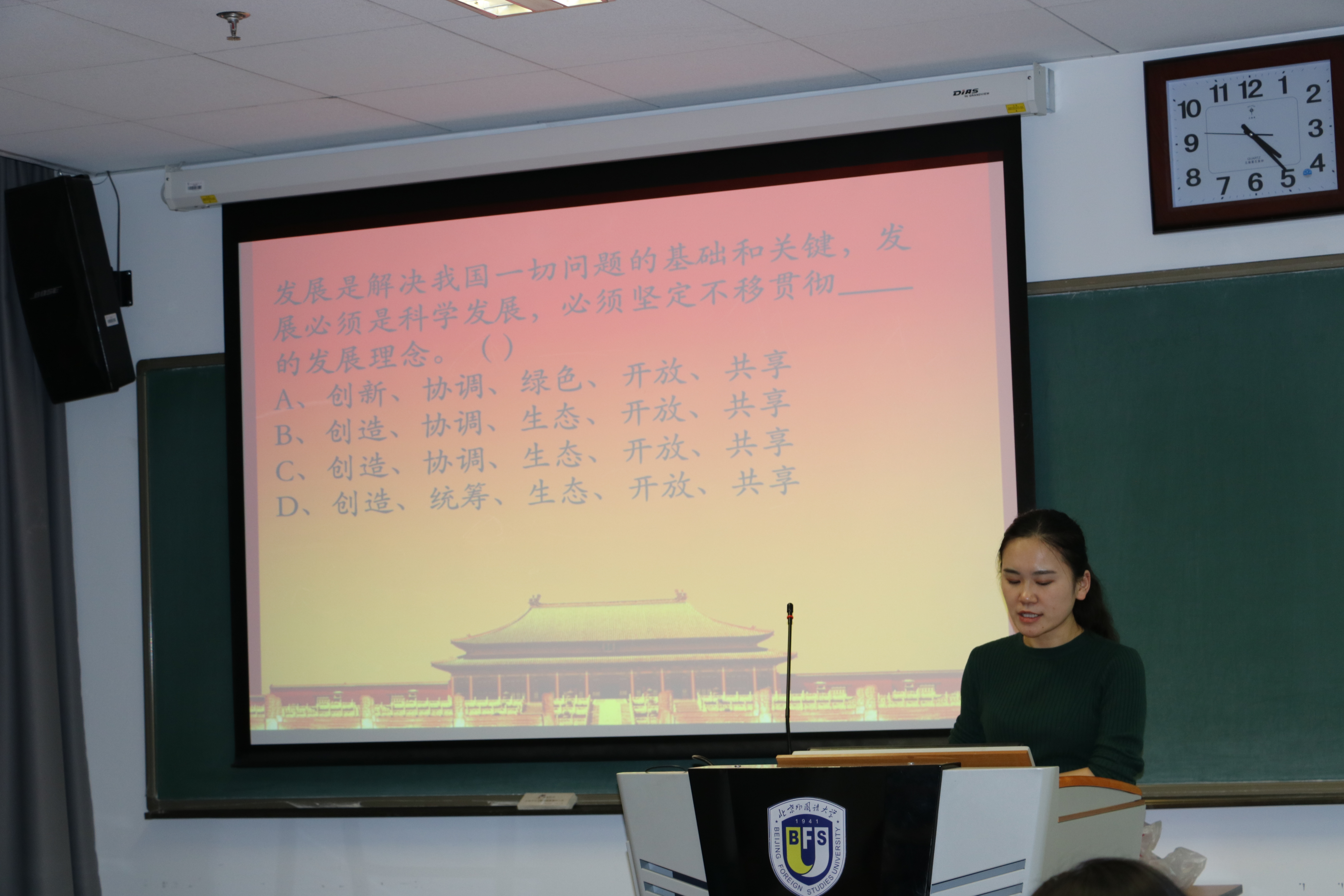 本次知识竞赛以中国共产党的基本理论、十九大报告、以及十九大后形成的党的最新理论成果为内容,通过一站到底式的竞答方式,以淘汰制的赛制,吸引了各位同学的积极踊跃的参与,每一个人在竞答过程中尽其所能,使得整个比赛过程既具娱乐性,也具有很强的学习性。每个人在答题过程中加深了对中国共产党的了解和对十九大精神的领悟。经过激烈的角逐,于慧、付豪、王琼分别获得了一等奖、二等奖和三等奖。