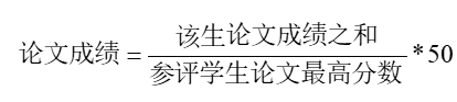 将参评学生评阅成绩最高分数赋分为50,每个学生的论文成绩计算办法如下: