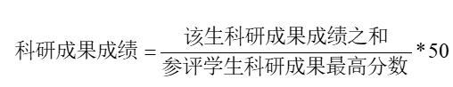 将参评学生科研成果成绩最高分数赋分为50,每个学生的成果成绩计算办法如下: