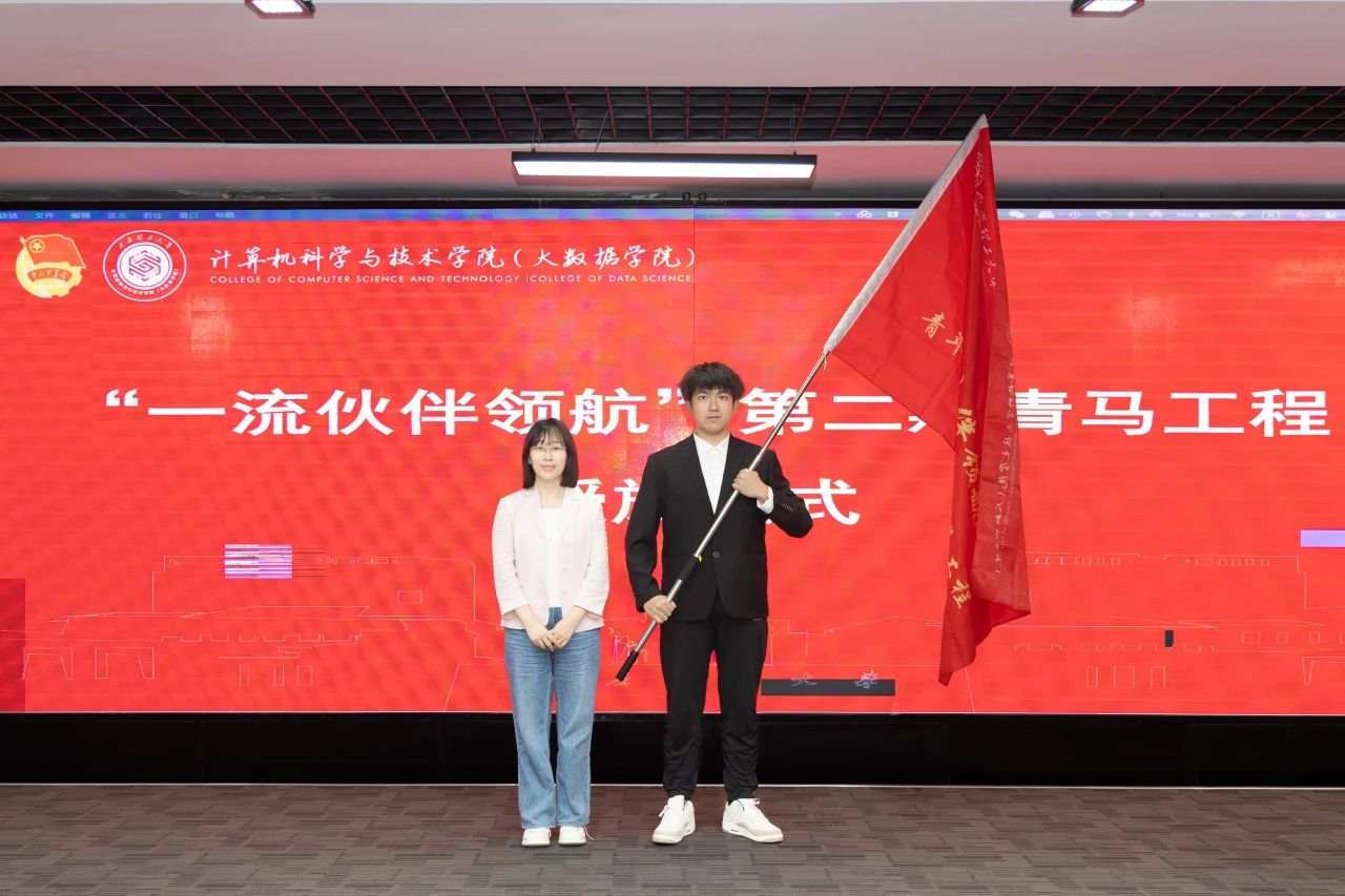 大会上,院党委副书记韩福英老师宣布了“一流伙伴领航”第二期青马工程正式开班,并向学生代表授旗。第一期青马工程班长王宇舟、第二期青马工程领航学长孙义波和学生代表王彦淼在会上进行发言。他们表示,参与到青马工程活动中让自己受益匪浅,呼吁青年学生展现青春作为、彰显青春风采、贡献青春力量,发挥引领示范作用,燃亮更多青年的“信仰之炬”“理想之炬”“奋进之炬”。