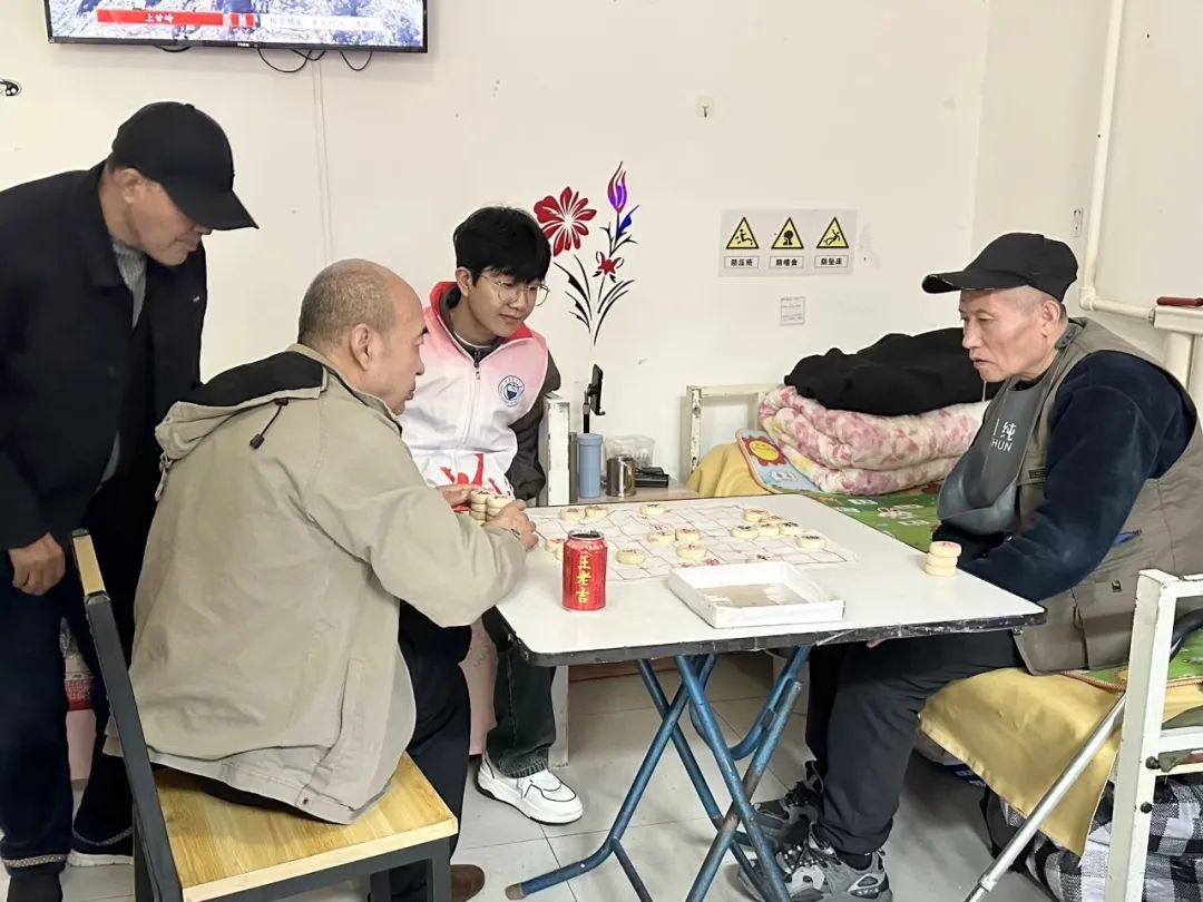 同时志愿者们与老人象棋博弈,拉近了与老人们之间心灵的距离。