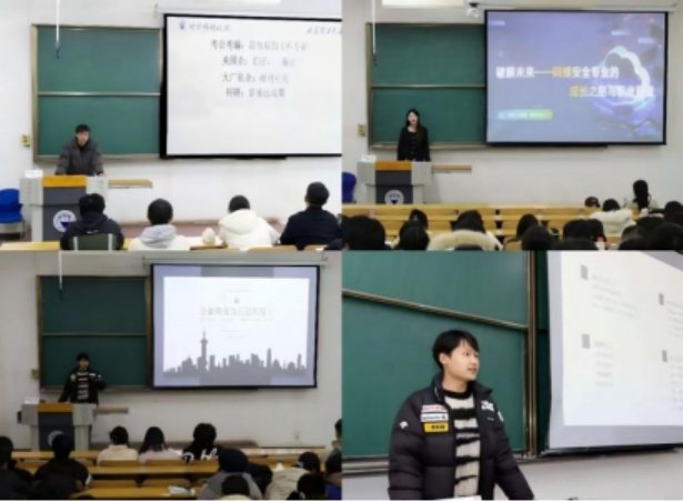网安2201王嘉爱同学聚焦于网络安全专业的未来,详细介绍了人工智能和区块链技术在网络安全中的应用,介绍网络空间安全专业的最新发展趋势,与时代接轨,并探讨了这些技术为网络空间安全专业带了的新的发展机遇。她强调,随着技术的不断进步,网络空间安全专业正面临着前所未有的发展机会。同时还分享了她在网络空间安全领域的个人背景和学术成就,并提供了网络空间安全专业的保研规划和职业规划建议。她指出,绩点、科技竞赛、英语能力和科研经历是保研的四大要素,并推荐了网安专业可以参加的竞赛,讨论了网络空间安全专业的就业前景,从保研考研、考公考编、大厂就业三个方面提出自己的建议。