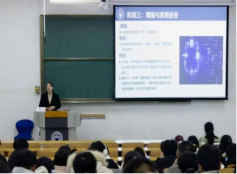 杨玉丽教师回顾了网络空间安全专业的发展历程,从通信保密到网络空间安全的演变,强调了在大数据背景下,网络安全界限不断向物理空间延伸的重要性。通过一系列网络安全事件,如“棱镜门”、“震网”病毒、乌克兰电网攻击等,展示网络空间安全对国家的重要性,并指出了个人信息泄露的严峻形势。杨老师详细介绍了网络空间安全专业的知识体系结构和课程设置,强调了网安专业作为学科交叉学科的特点,涉及计算机、电子通信、数学等多个领域。以大数据为例,讲述网安素养的培养与提升,并对网安专业学生的学业规划进行了指导与规划。